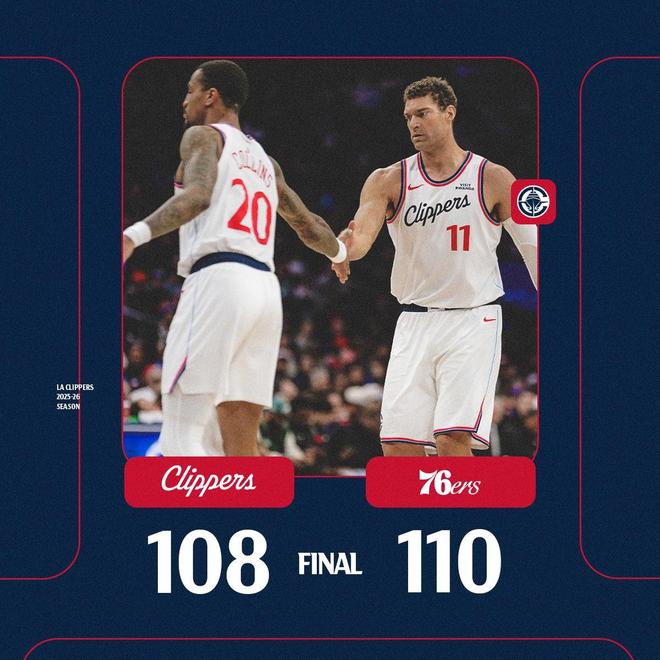 科林斯罚进2球,马克西、哈登各有远投不中,桑德斯补篮被犯规,纳斯挑战判罚成功,改判祖巴茨推人犯规,德拉蒙德2罚全中。距离终场仅剩68秒,快船落后4分,泰伦卢请求暂停。桑德斯、格莱姆斯各有外线不中,埃奇库姆抢下篮板球。哈登抢断马克西,桑德斯2罚全中,马克西被犯规,泰伦卢挑战判罚成功,改判邓恩抢断,比赛仅剩11秒,快船握有绝杀机会,泰伦卢请求暂停。哈登连续2次远投不进,比赛时间走完。最终,快船以108比110惜败于对手,惨遭13分逆转。