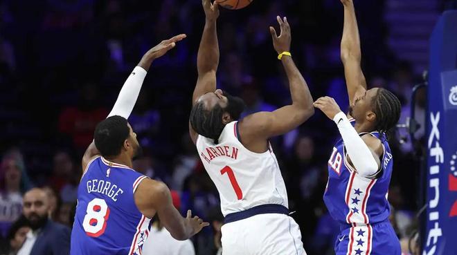 易地再战,马克西连投带罚得到3分,桑德斯回敬远投,科林斯命中2+1,马克西2罚全中。哈登外线打铁,埃奇库姆暴扣,泰伦卢请求暂停。格莱姆斯连投带罚得到4分,马克西抢断后2罚全中,桑德斯与马克西在中距离斗法。邓恩抛投取分,乔治2罚1中,哈登抛投不进,祖巴茨补扣。